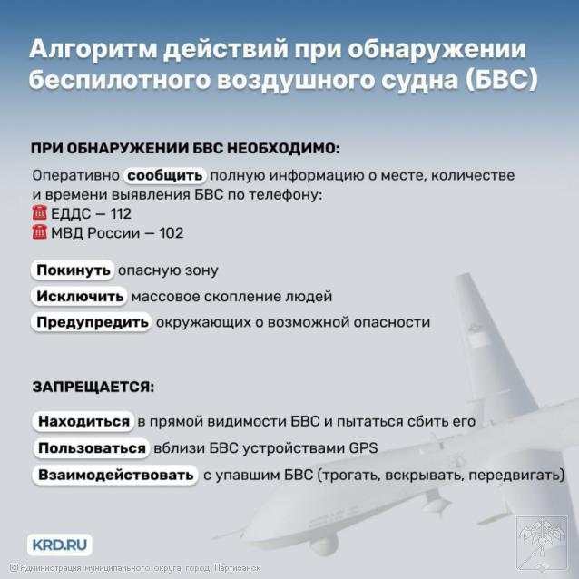 instrukciya_opri_obnaruzhenii_bla.docx Скачать файл. 20.55 КБ instrukciya_opri_obnaruzhenii_bla.docx 5 просмотров Перекрёстные ссылки книги для 10.07.2025г. ИНСТРУКЦИЯ о порядке действий при обнаружении беспилотного воздушного судна в воздушном пространстве над территорией муниципального округа город Партизанск Приморского края ‹ Памятка "Действия при угрозе теракта на железнодорожном транспорте" 06.06.2025г. Вверх 17.07.2025г. ИНСТРУКЦИЯ о порядке действий при обнаружении беспилотного воздушного судна в воздушном пространстве над территорией муниципального округа город Партизанск Приморского края ›