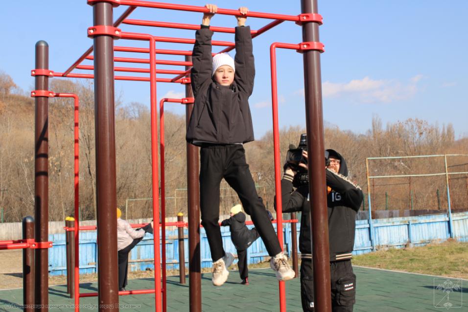 На спортивной площадке образовательного центра «Кристалл» сегодня особенно многолюдно. В этот осенний день здесь проводят урок физкультуры. Детвора подтягивается на перекладине, выполняет элементы воркаута на тренажерах, качает пресс на скамейках и на резиновом покрытии.