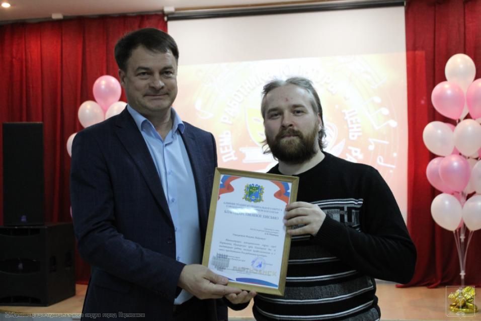 Теплые слова поздравлений адресовал сегодня работникам культуры глава муниципального округа город Партизанск Олег Бондарев, отметивший огромный вклад всех собравшихся в зале в развитие культуры.