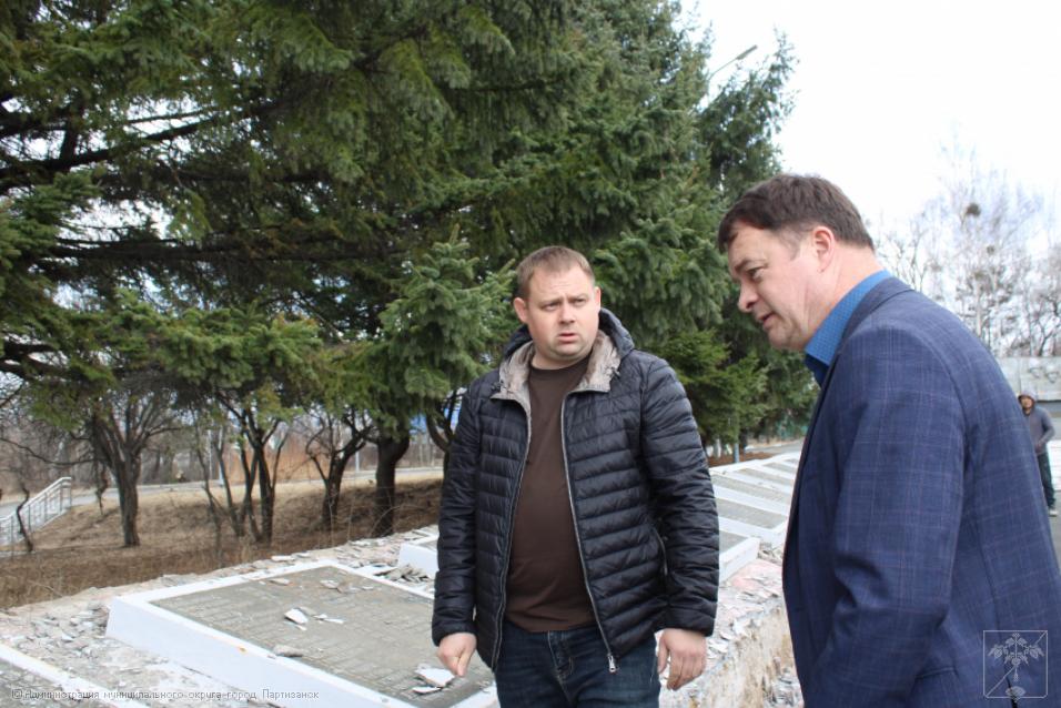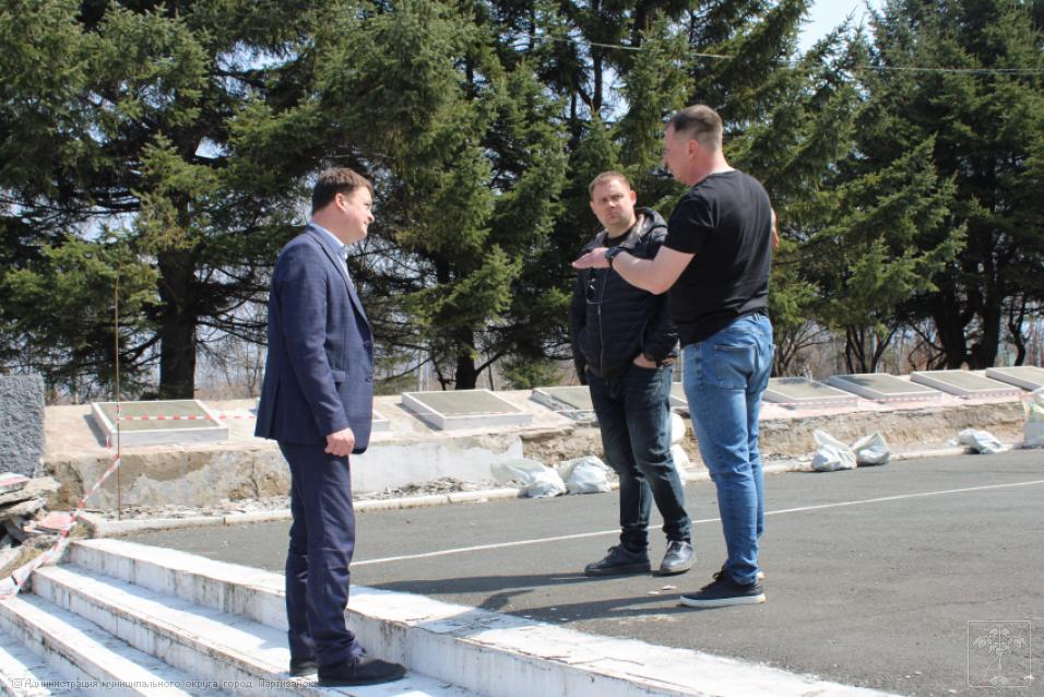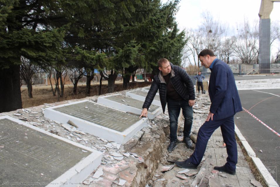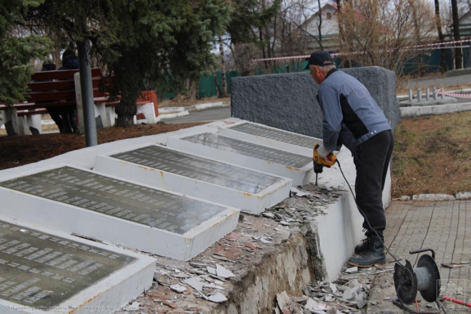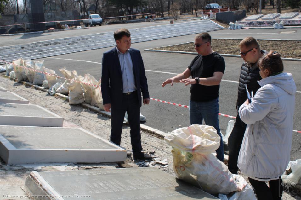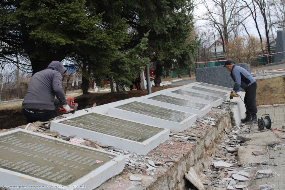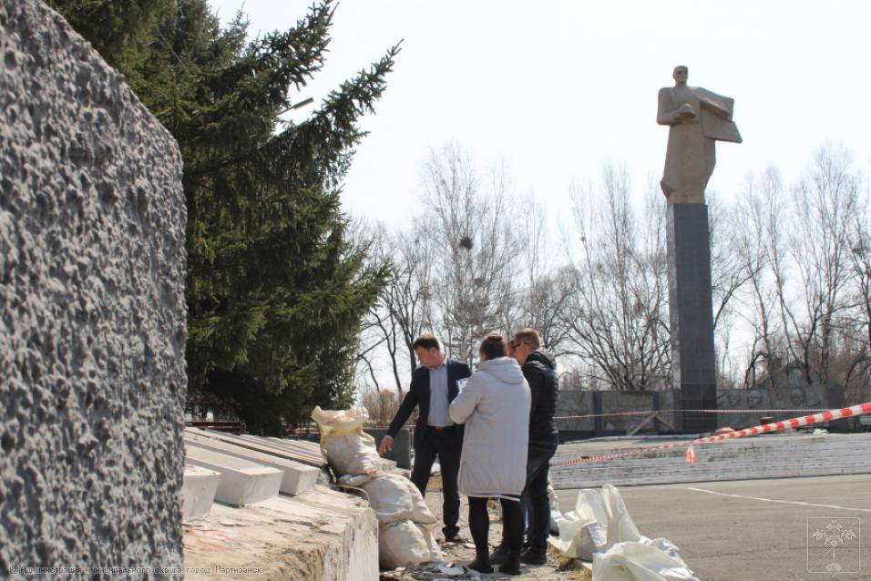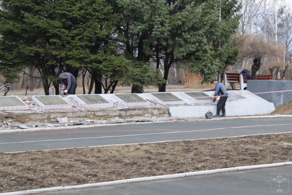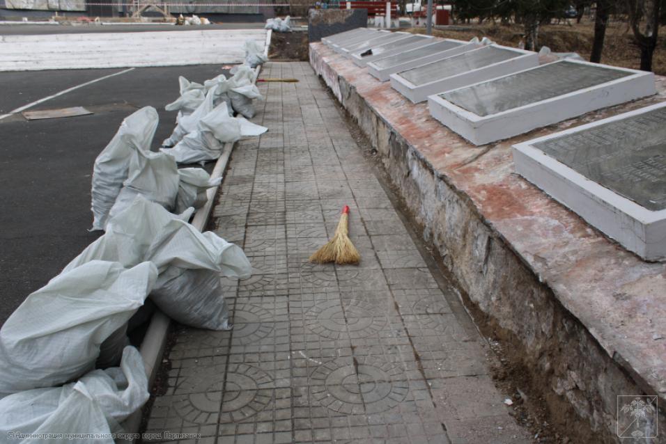 Ремонтные работы на монументе жителям Партизанска, погибшим в годы Великой Отечественной войны 1941-1945 гг., идут полным ходом, ведь до юбилейной даты остается ровно месяц. Работы ведутся под непосредственным контролем главы муниципалитета Олега Бондарева, который сегодня встретился с представителями подрядной организации, чтобы обсудить ряд наиболее проблемных вопросов, касающихся ремонта столь важного объекта. Главным образом во время встречи говорили о том, как будет вестись восстановление мемориальных плит с именами наших погибших земляков, какие работы и в какие сроки в целом будут выполнены на монументе. А это - обшивка плит керамогранитом, покраска стелы с солдатом, ремонт ступеней и барельефа. - Конечно, объем предстоит немалый. Наша задача – работы провести качественно, в четко установленные сроки, чтобы праздничные мероприятия прошли в красивом ухоженном сквере, на высоком профессиональном уровне, - отметил глава округа на встрече с подрядчиком.