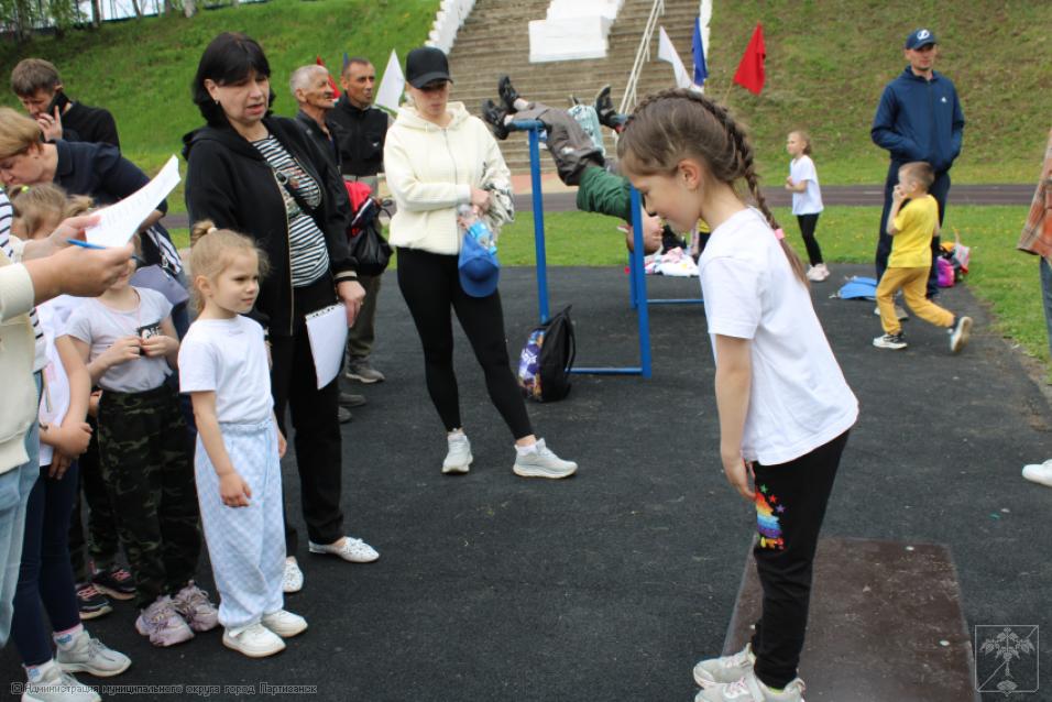 Дошколятам предстояло участвовать в четырех видах спорта: бег на 30 м, челночный бег, прыжки в длину с места, упражнение на гибкость. Настрой у всех был боевой, тем более, что рядом были взрослые наставники. Многие были в своих фирменных футболках. Все это смотрелось красиво и очень патриотично! Кое-кто из девчонок тут же, на зеленом поле, демонстрировал свою гибкость, мальчишки пробовали силу на перекладине, и в этом тоже чувствовалась хорошая физическая подготовка.