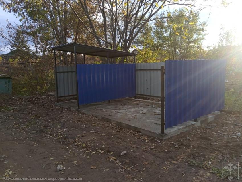 Обустроено четыре мусорных площадки с мусорными баками (по 3 на каждой площадки) и с крытыми коробами для сбора крупногабаритного мусора.